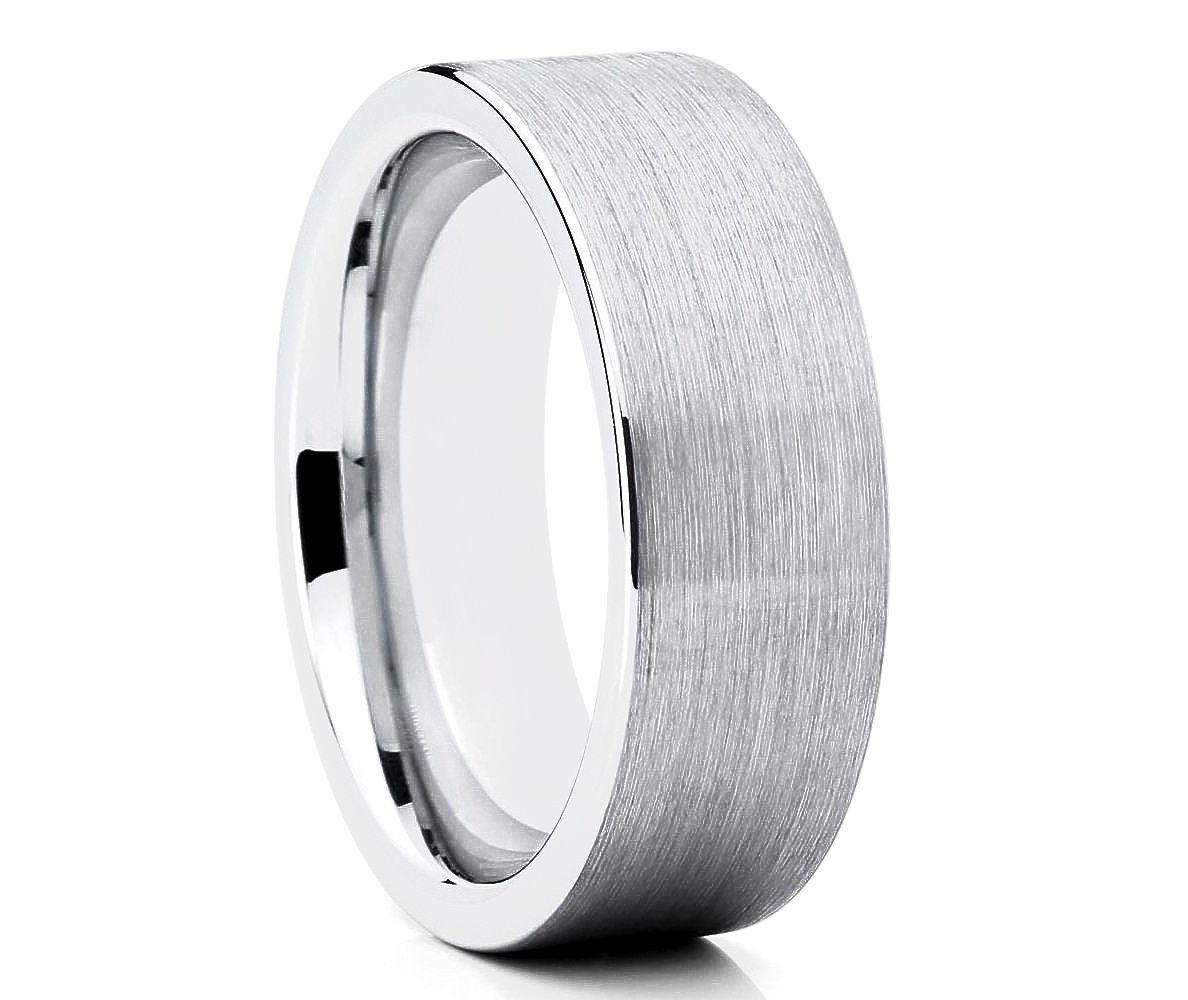 White Tungsten Wedding Ring,Men's Wedding Band,8mm,Women's Wedding Band,6mm,Tungsten Carbide,Engagement & Anniversary,Comfort Fit,Brush