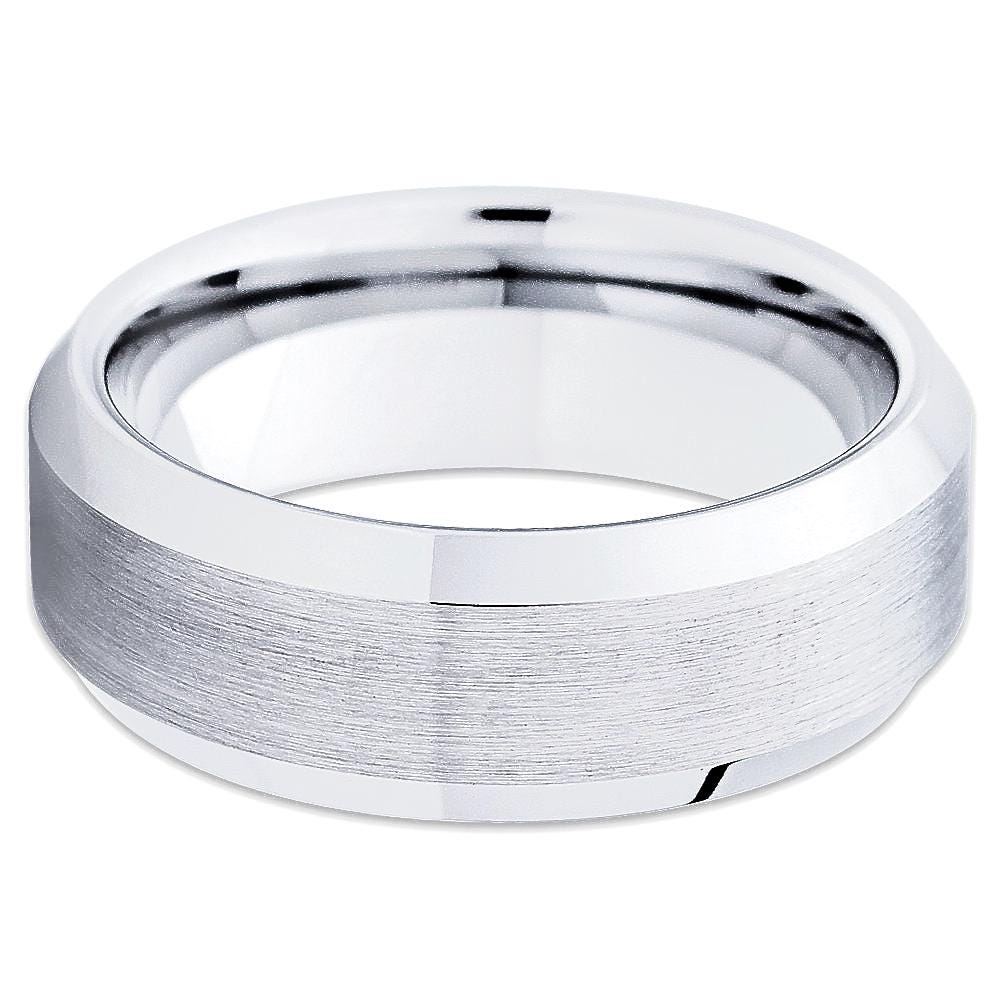 Men's White Tungsten Wedding Band,Women's White Tungsten Wedding Ring,8mm & 6mm,Comfort Fit,Beveled Edges,Anniversary,Engagement,Unique Ring