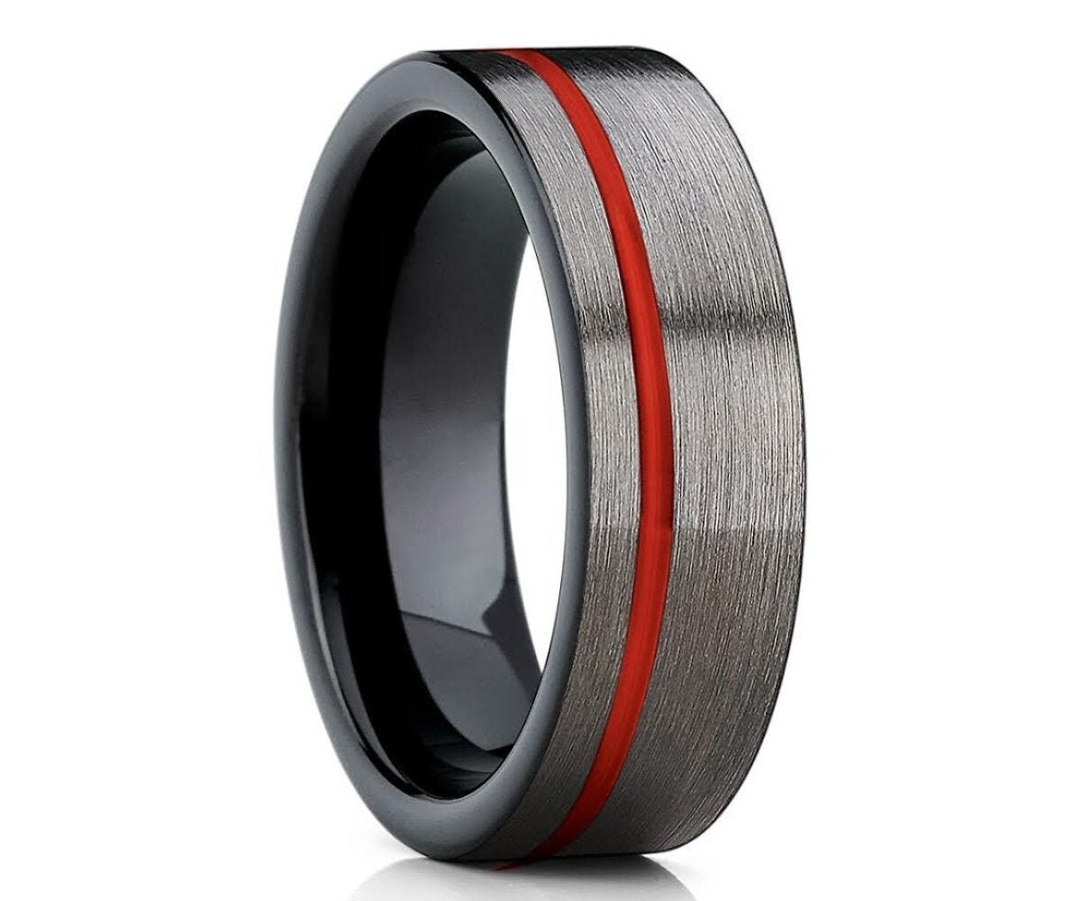 Gunmetal Tungsten Wedding Ring,Red Tungsten Ring,Anniversary Ring,Engagement Ring,Black Wedding Band,Unique Red Tungsten Ring,Comfort Fit